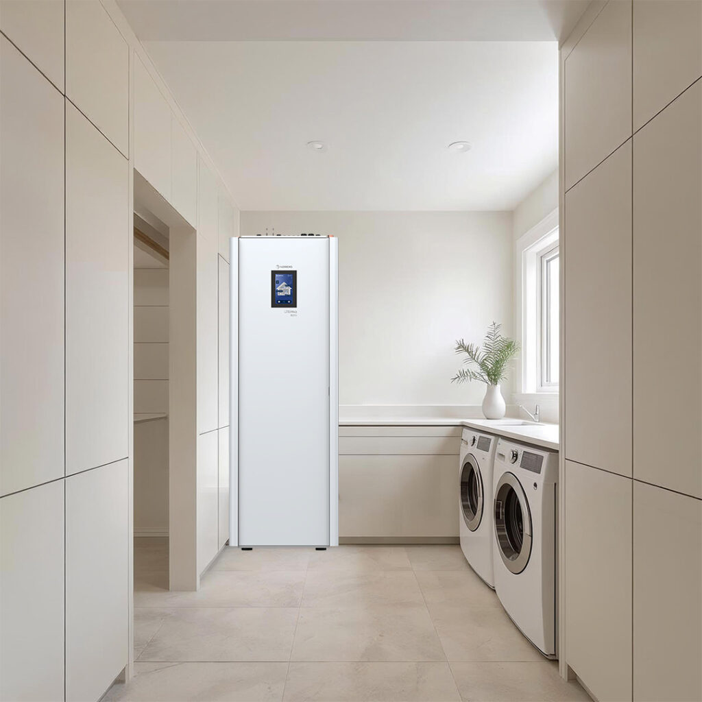 • Integrovaný zásobník s objemom 250 l poskytuje dostatok teplej vody pre celú domácnosť