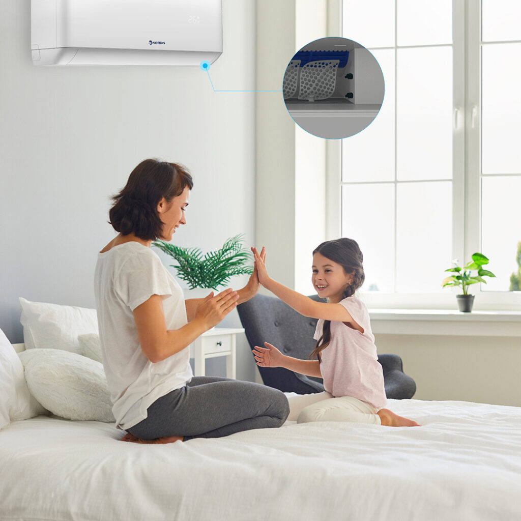 Pokročilá technológia Gentle Cool Wind integrovaná v klimatizáciách série NØRDIS Orion Pro je navrhnutá pre maximálny komfort chladenia.