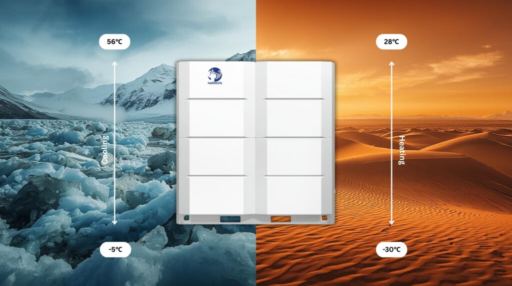 NØRDIS VRF systems are designed to perform efficiently across extreme climates – from -30°C